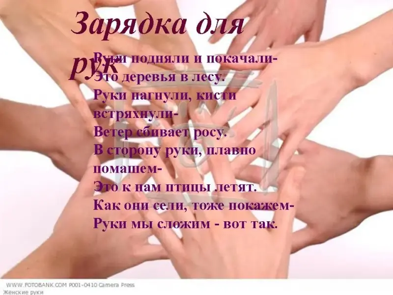 2) Физкультминутка №1: выполнение упражнений для рук. (1 мин) (слайд 12)