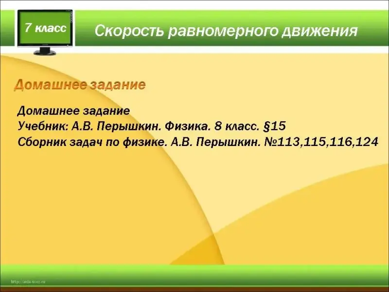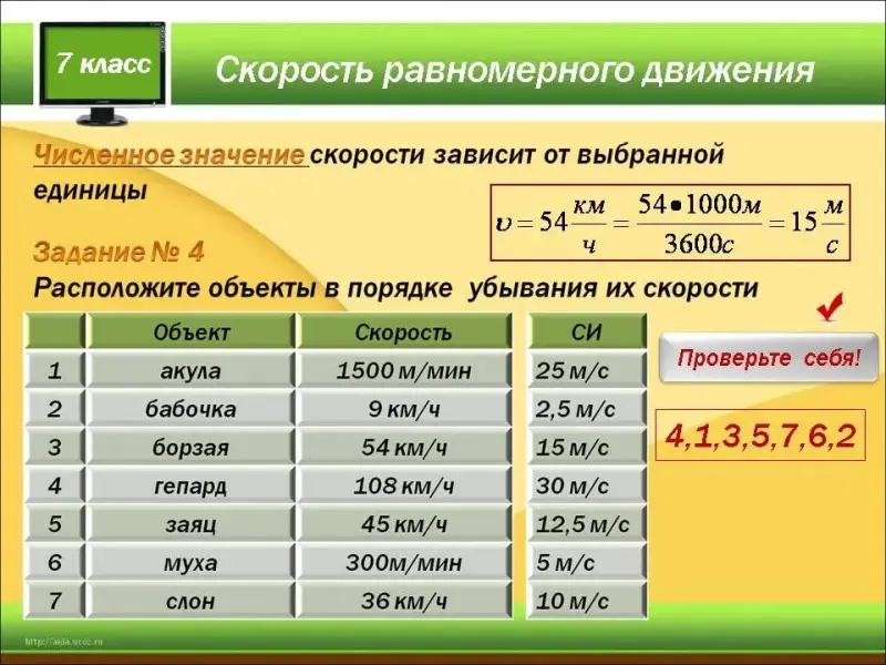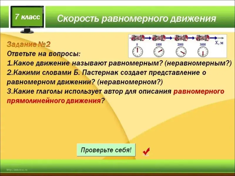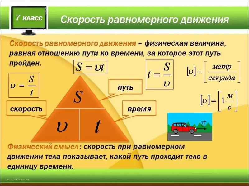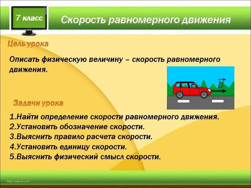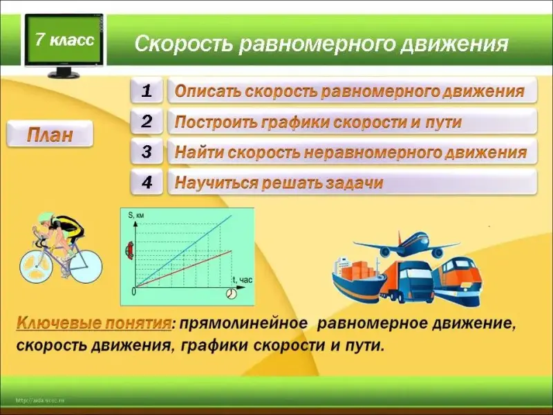 Тема урока "Скорость равномерного прямолинейного движения". 7-й класс