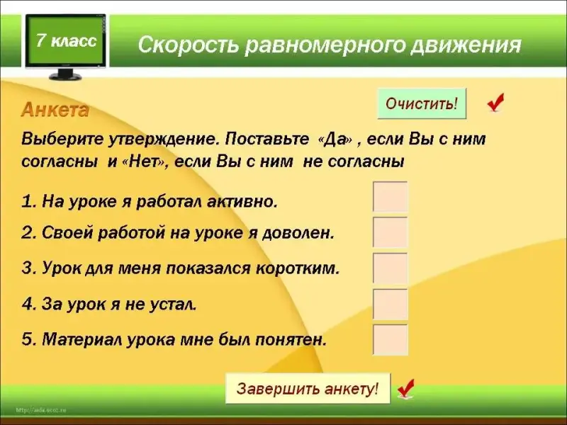 1. Раздаточный материал: карточки-предписания для самостоятельной работы, тест, анкета.