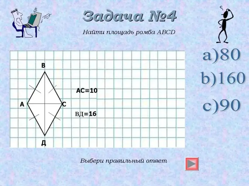 3. По формуле S= 1/2 * d1 * d2 можно вычислить площадь: