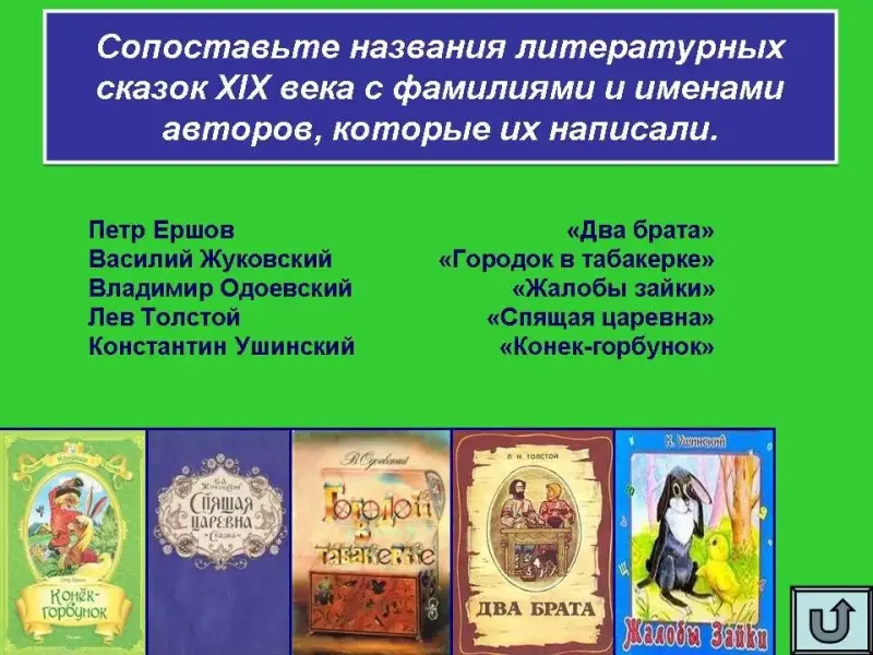 Сопоставьте названия литературных сказок XIX века с фамилиями и именами авторов, которые их написали.
