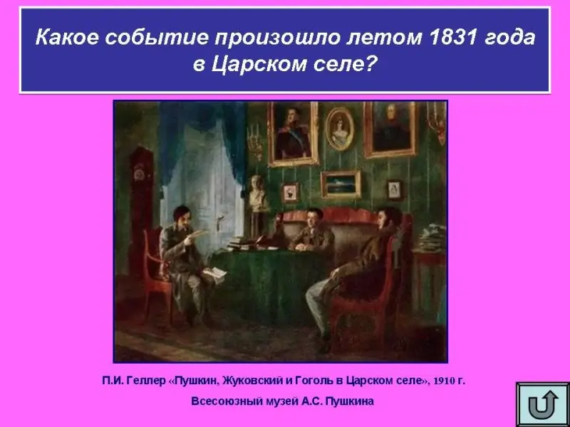 Какое событие произошло летом 1831 года в Царском селе? (Поэтическое состязание А.С. Пушкина и В.А. Жуковского) Расскажите, что вам известно об этом событии.