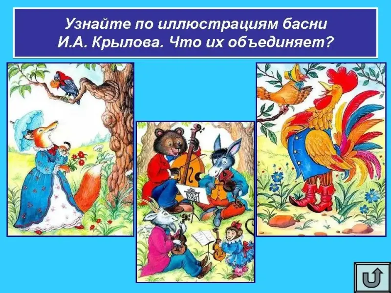 Узнайте по иллюстрациям басни И.А. Крылова. Что их объединяет?
