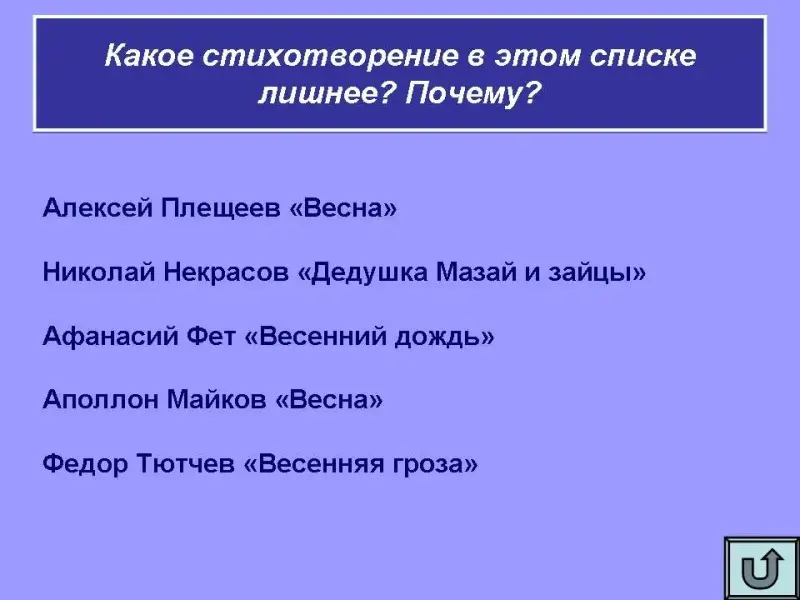 Какое стихотворение в этом списке лишнее? Почему?