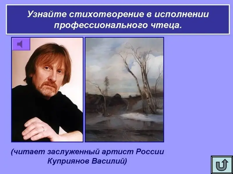 Поэт, любимое время для которого - весна. В своих стихах он выражал мысль об удивительном влиянии природы на человека, на его чувства. (Ф. Тютчев)