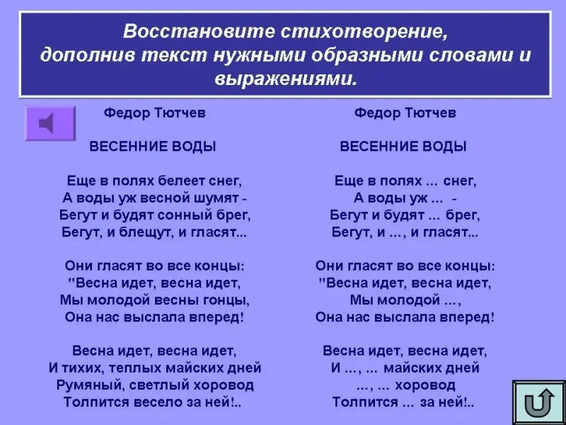 Восстановите стихотворение, дополнив текст нужными образными словами и выражениями.