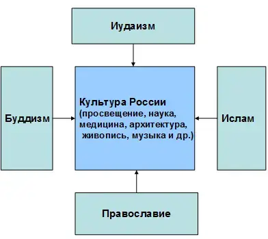 Культура России должна рассматриваться в тесной связи с традиционными религиями. Знание о религии должны быть в включены в каждую тему учебного материала.