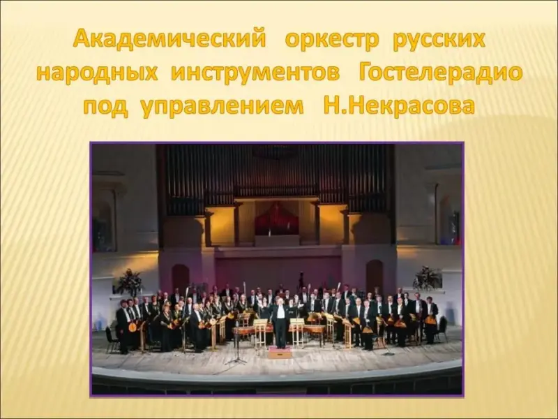 Слайд 10. Академический оркестр русских народных инструментов Гостелерадио под управлением Н.Некрасова, для которого рождаются самые значительные оркестровые циклы "Перезвоны" и "Картины Древней Руси".