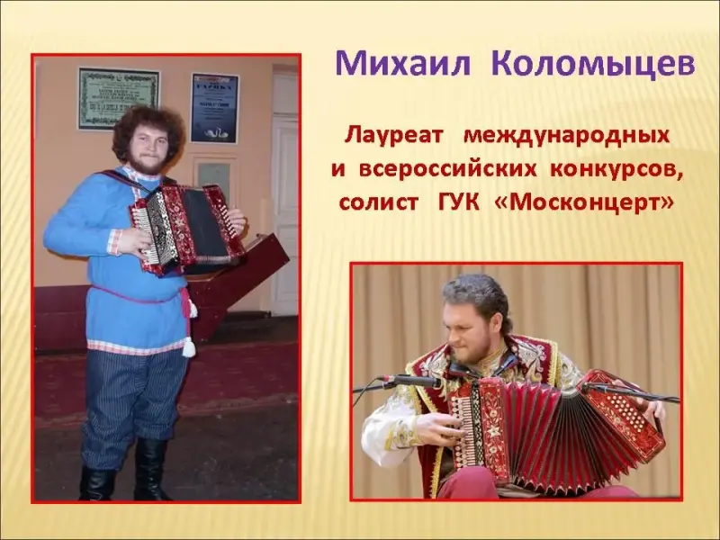 Слайд 23. Лауреат международных и всероссийских конкурсов, солист ГУК "Москонцерт" - Михаил Коломыцев;