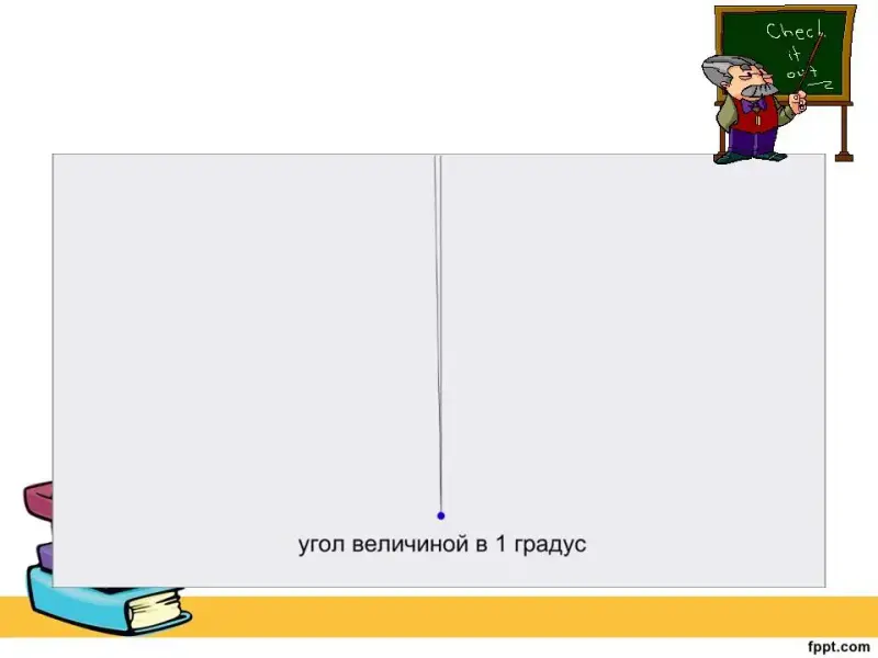 Учитель: Пойдём по порядку и начнём разговор с единицы измерения величины угла. Всё внимание на доску.