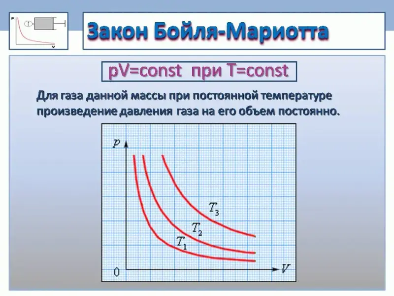 Для газа данной массы при постоянной температуре произведение давления газа на его объем постоянно.