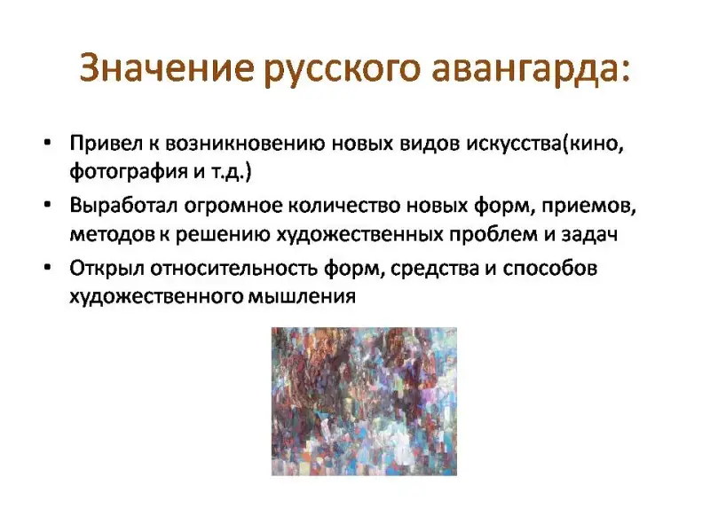 III. Освоение нового материала через знакомство с живописью русского авангарда. Демонстрация, лекция.