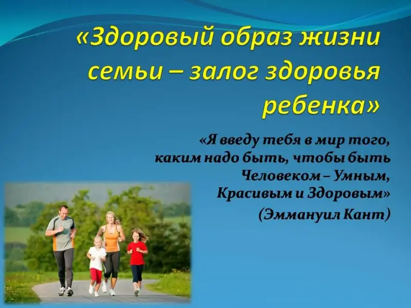 Сегодня семье отводится главенствующая роль в формировании здорового образа жизни. Семья - это основное звено, где формируются полезные привычки и отвергаются вредные. Первые впечатления у ребенка, связанные с выполнением определенного действия, черпаются из домашнего бытия. Ребенок видит, воспринимает, старается подражать, и это действо у него закрепляется независимо от его неокрепшей воли. Выработанные с годами в семье привычки, традиции, образ жизни, отношение к своему здоровью и здоровью окружающих переносятся ребенком во взрослую жизнь и во вновь созданную семью. Здоровый образ жизни не занимает пока первое место в иерархии потребностей и ценностей человека в нашем обществе. Но если взрослые научат детей с самого раннего возраста ценить, беречь и укреплять свое здоровье, если они будут личным примером демонстрировать здоровый образ жизни, то только в этом случае можно надеяться, что будущие поколения будут более здоровы и развиты не только личностно, интеллектуально, духовно, но и физически. Задача состоит не только в том, чтобы подготовить ребёнка к жизни, но и в том, чтобы обеспечить ему полноценную жизнь уже сейчас. А полноценная жизнь может быть только у здорового человека. Совместная деятельность родителей и детей по укреплению здоровья и ведению здорового образа жизни может решить проблему здоровья нации. Здоровый образ жизни - свод исторически проверенных временем и практикой норм и правил жизнедеятельности, нацеленных на то, чтобы человек: