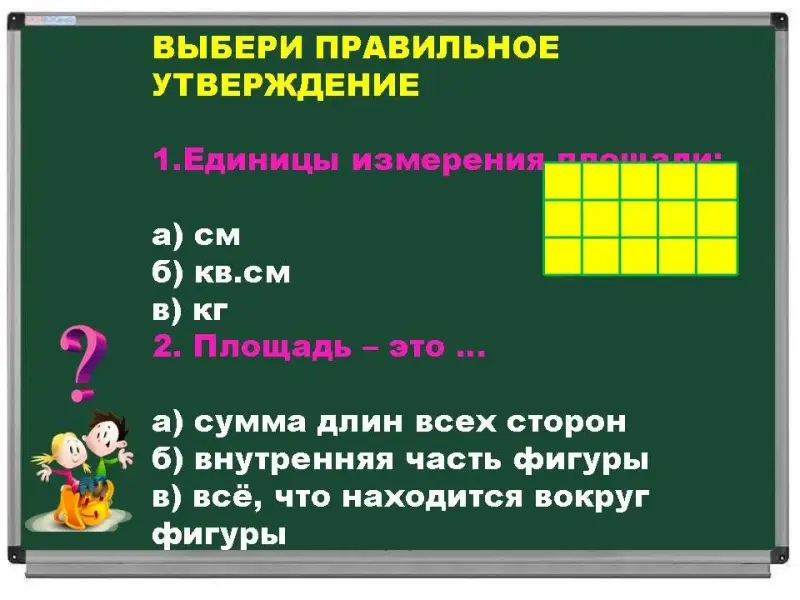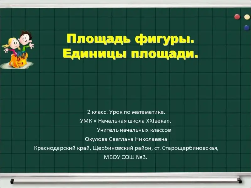 Тема урока "Площадь фигуры. Единицы площади". 2-й класс