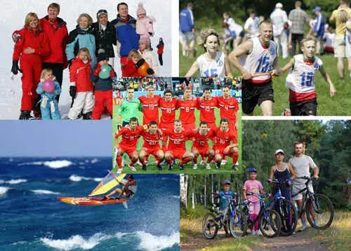 At home you've made a collage about sports benefits. In what way do you think each picture is a benefit and decide which two offer the greatest benefits. Remember the expressions that may help you.