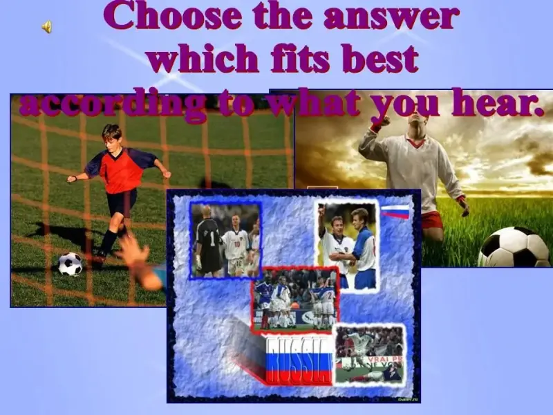 The poster states that Britain has the most popular football league in the world. Would you agree with this statement? What Russian footballers do you know? Is football important to you? Why do you think some people are so driven to win? Do you agree that business is too involved in sport? Let's find out what other people think on this account. Listen to part of a radio interview in which a sports journalist is talking about footballers' pay. Choose the answer that fits best according to what you hear.