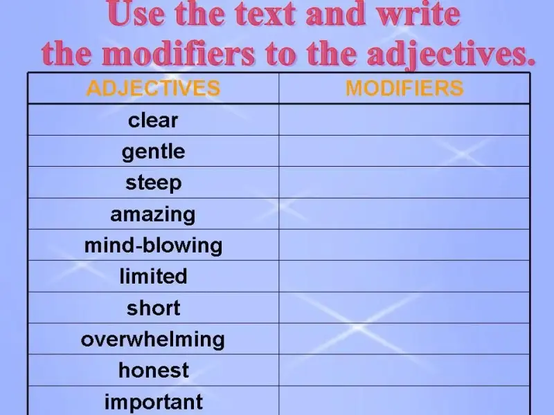 б) упражнения на повторение грамматического материала по теме: "Adjective Modifiers".