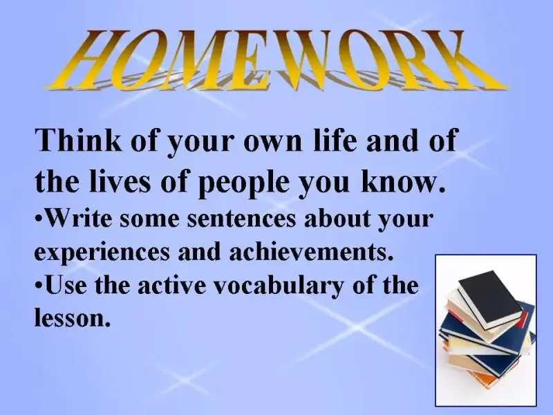 - At home write some sentences about your experiences and achievements.