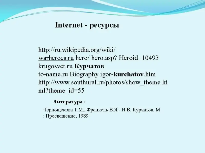 4 участник Не терпел Курчатов и различного рода научных спекуляций типа тех, какие допускал Т. Д. Лысенко в биологии. Был убежден: наука - это большой и тяжелый труд, а самокритичность, абсолютная порядочность - качества, совершенно необходимые ученому. Любимым писателем И. В. Курчатова был (Михаил Булгаков, а любимой книгой - роман Булгакова "Мастер и Маргарита". Ученик читает отрывок из этого романа.