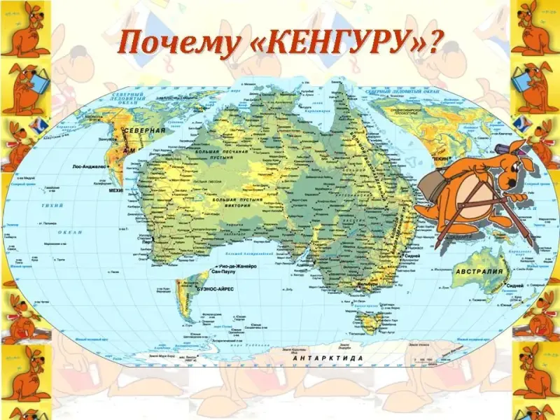 Кенгуру. Я пришел на праздник к вам рассказать о конкурсе и немного повеселиться и поиграть. Ребята, попробуйте догадаться, где возник этот конкурс.
