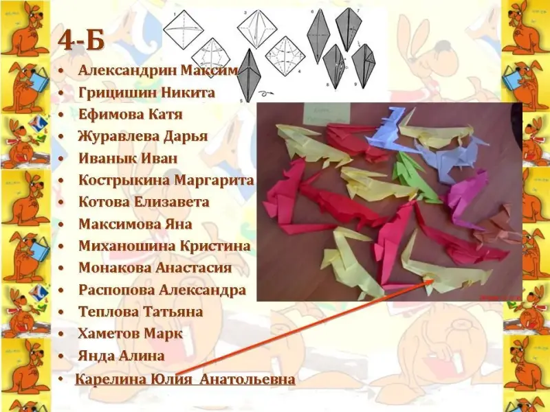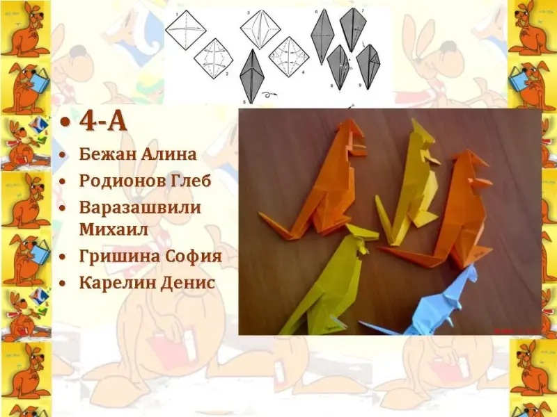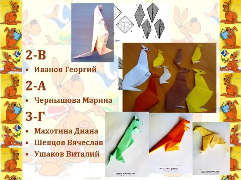 Ведущий. Уважаемая, Кенгуру, ребята приготовили тебе сюрприз: из листа бумаги они сложили символ конкурса - кенгуренка.
