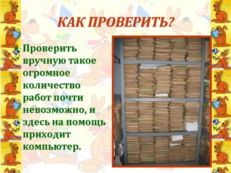 Чтец 2. Проверить вручную такое огромное количество работ почти невозможно, и здесь на помощь приходит компьютер. (Слайд 20)