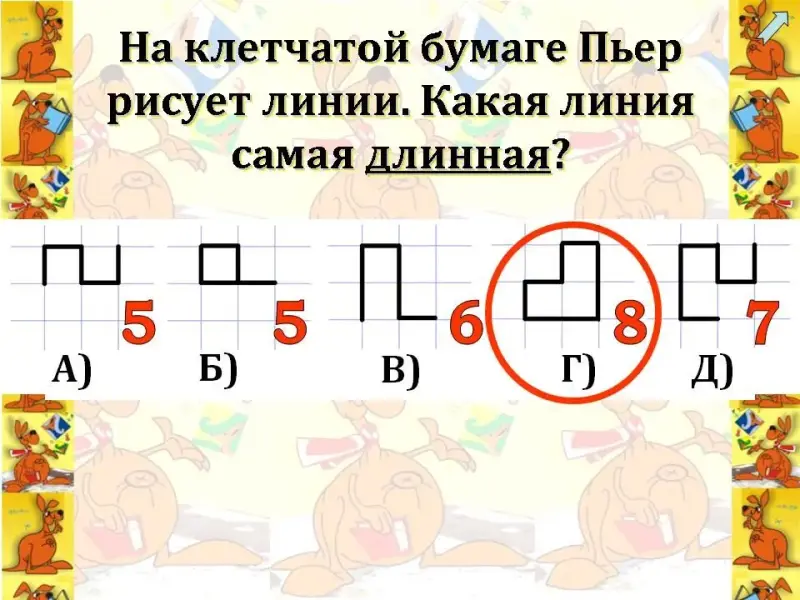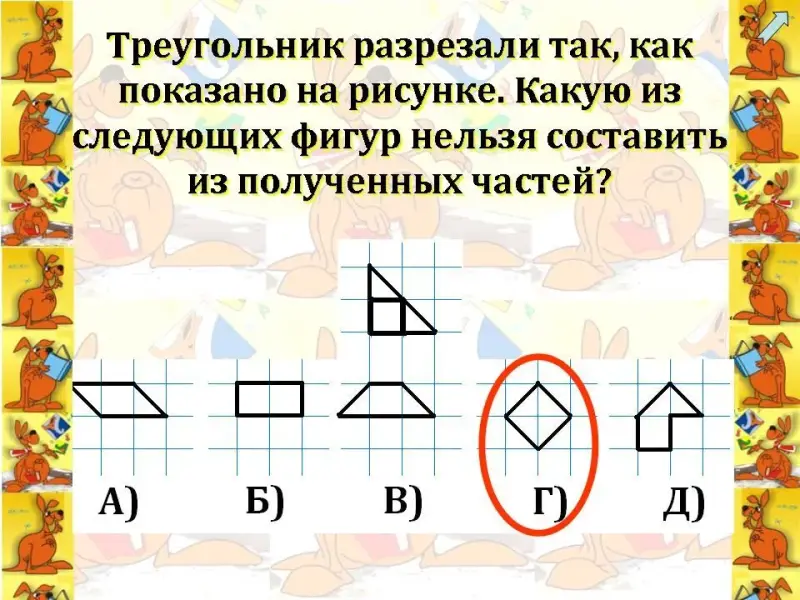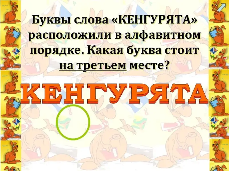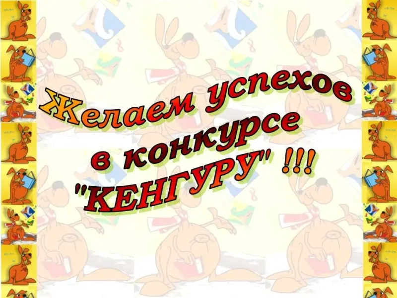 Кенгуру. Спасибо вам, ребята. Какие же вы молодцы. Здорово вы справились с моими заданиями. Ребята, а интересно вам было их выполнять? Я очень рада. Поднимите руку, кому захотелось еще порешать мои задания? Ура, сколько у меня друзей. Мы вновь встретимся с вами 21 марта на конкурсе-игре "Кенгуру".