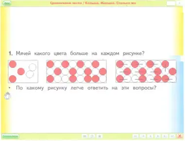 - научить учащихся выявлять, не пользуясь счётом, в каких из двух групп предметов их больше (меньше) или поровну;