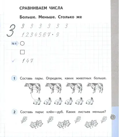 Основное содержание темы, понятия и термины: отношения «столько же», «больше», «меньше», «больше (меньше) на …»
