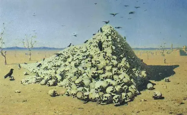 Рассмотрите картину В.Верещагина "Апофеоз войны" и ответьте на вопросы: