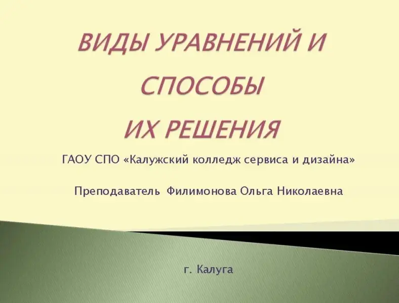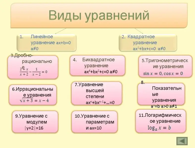 Виды уравнений и способы их решения