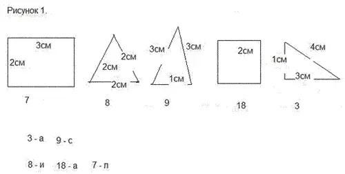 Учитель: Следующая ступень - способы нахождения периметра разных геометрических фигур. Посмотрите на доску. Назовите геометрические фигуры, у которых наименьшее количество углов.