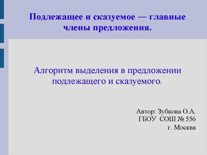 Тема урока "Подлежащее и сказуемое – главные члены предложения. Алгоритм выделения в предложении подлежащего и сказуемого"