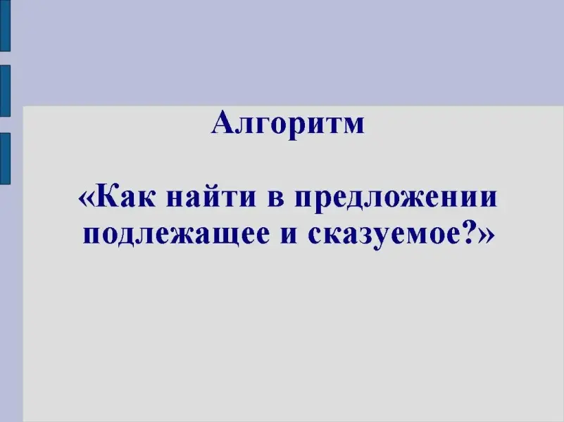 Так вот существует алгоритм, то есть шаги, которые помогают найти главные члены предложения. Слайд 5.