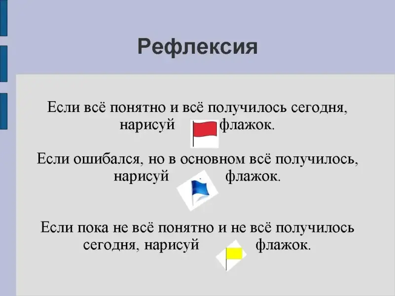 - Если ошибался, но в основном всё получилось, нарисуй флажок синего цвета.