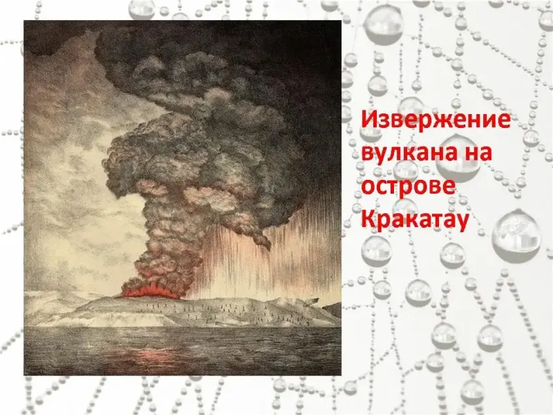 Учитель Ранним утром 27 августа 1883 года четыре чудовищных взрыва потрясли небо над планетой. Кракатау, маленький островок в проливе между Явой и Суматрой подпрыгнул, выкинул в воздух четыре с половиной кубические мили земли и лавы. А затем осел в море. Две трети его залили волны. Чудовищные волны, побежавшие по морю, после того как Кракатау плюхнулся в океан, смыли на Яве и Суматре 163 деревни вместе с 36380 их жителями. Страшная была катастрофа! После извержения на Кракатау не осталось ничего живого. Он был спален огнем, расколот на части, залит лавой, посыпан пеплом. Корабли, которые пытались пристать к Кракатау, с трудом пробирались через "пенку" плавающей на поверхности моря пемзы. Тысячи мертвых черепах качались на волнах. Но... Через полгода биолог Котто нашел на Кракатау первое живое существо...