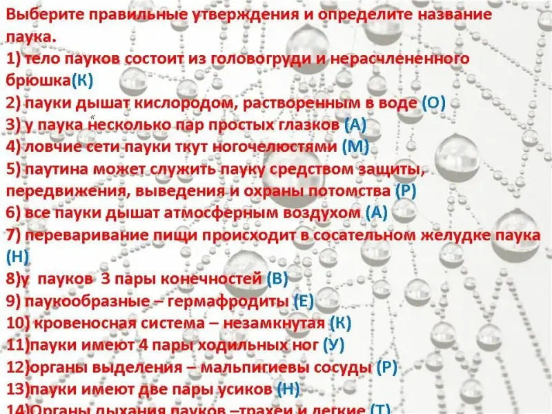 4) ловчие сети пауки ткут ногочелюстями (М)