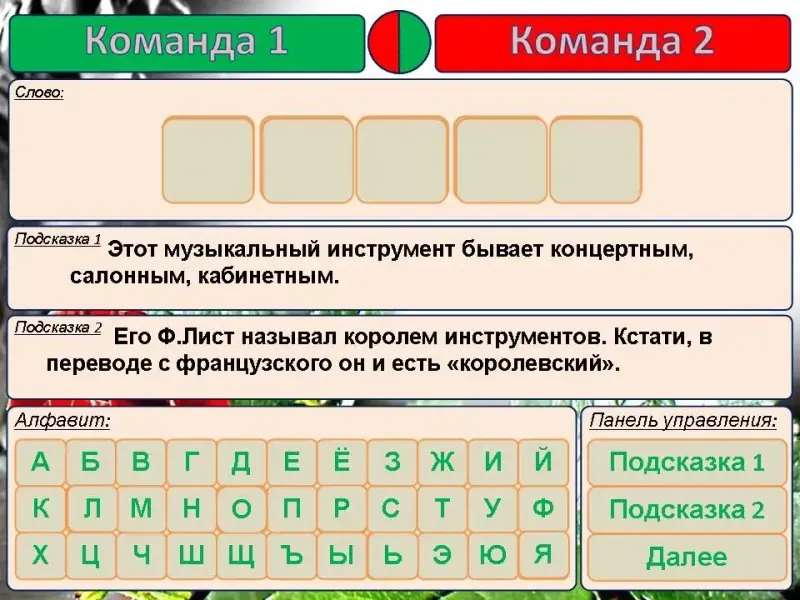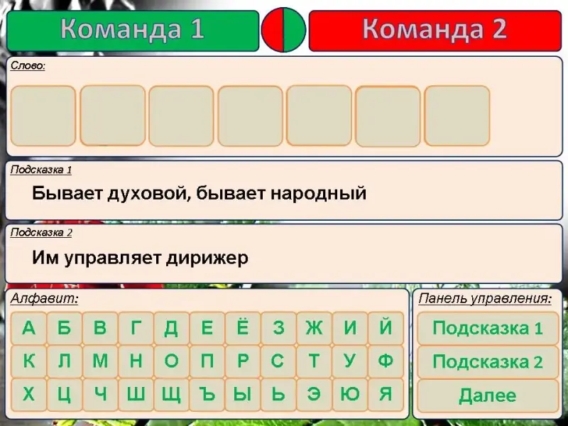- На станции "Музыкальный кроссворд" предложен кроссворд, выполненный в электронном виде. Нужно определить музыкальные инструменты, назвать термины, композиторов и т.д. Можно использовать две подсказки. Так же можно воспользоваться раздаточным маткриалом (Приложение 7, Презентация 1)