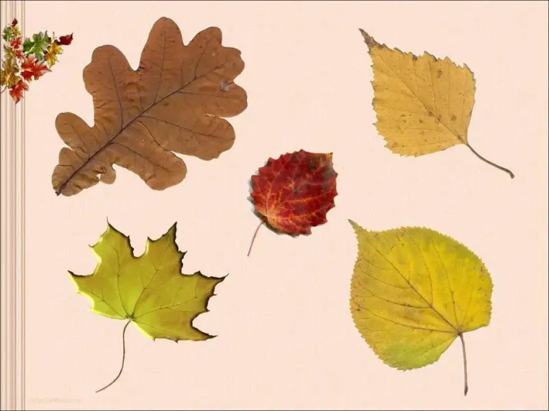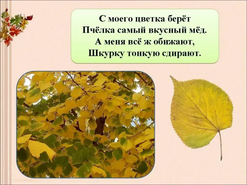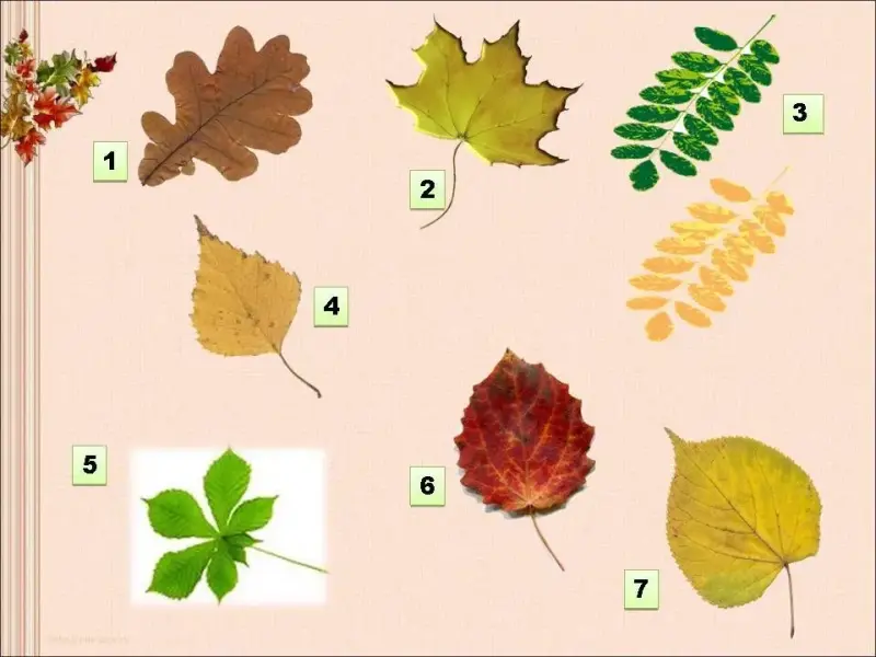 Покажите листочки этого дерева, как оно называется? (Клён)