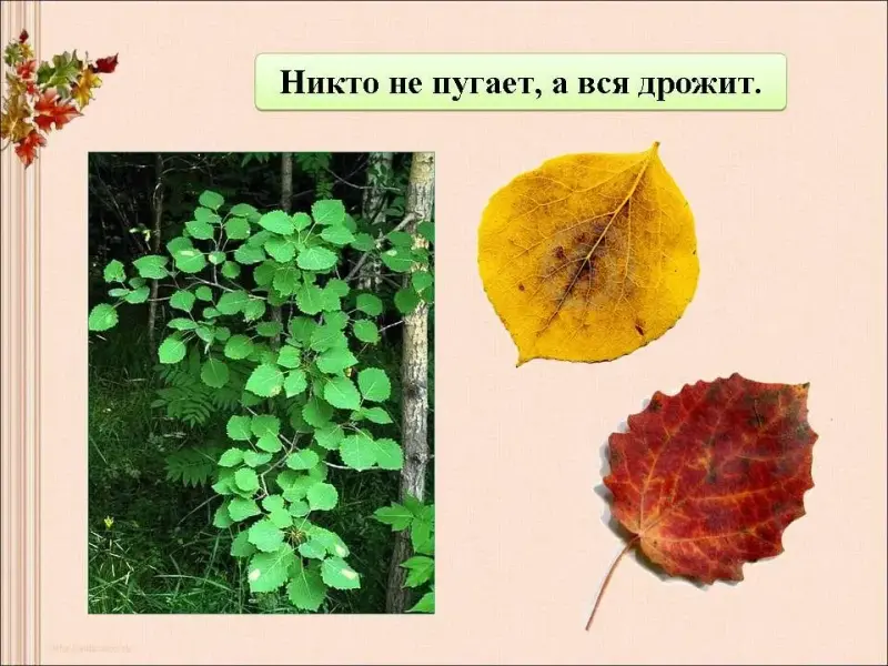 - Покажите листочки этого дерева, как оно называется? (Осина)