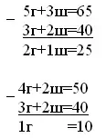 3адача 4*. Масса 3 гвоздей и 2 шурупов 40 г, а 5 гвоздей и 3 шурупов - 65 г. Какова масса одного гвоздя?