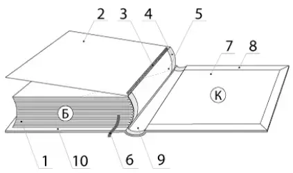 Покровной материал (8) - материал для переплетной крышки книги.