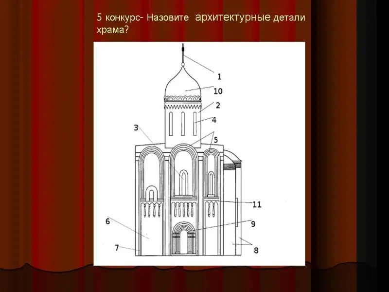 Пятый конкурс «Назовите архитектурные детали храма» (шестой слайд)