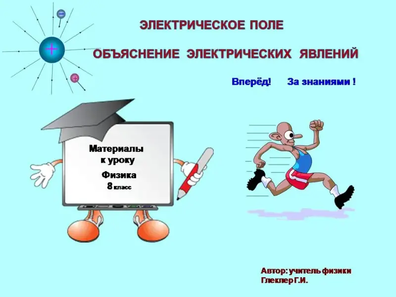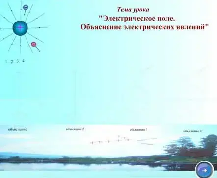 Учитель переходит (кнопкой) на стр. 2 и начинает объяснение нового материала по теме «Электрическое поле. Объяснение электрических явлений».