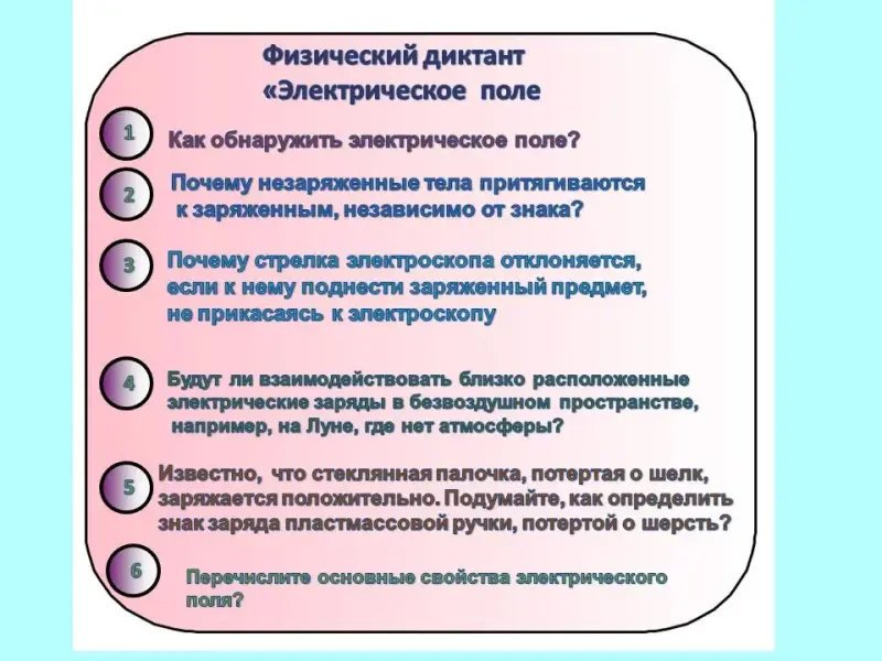 а) повторение изученного материала, необходимого для введения понятия «Электрическое поле»;