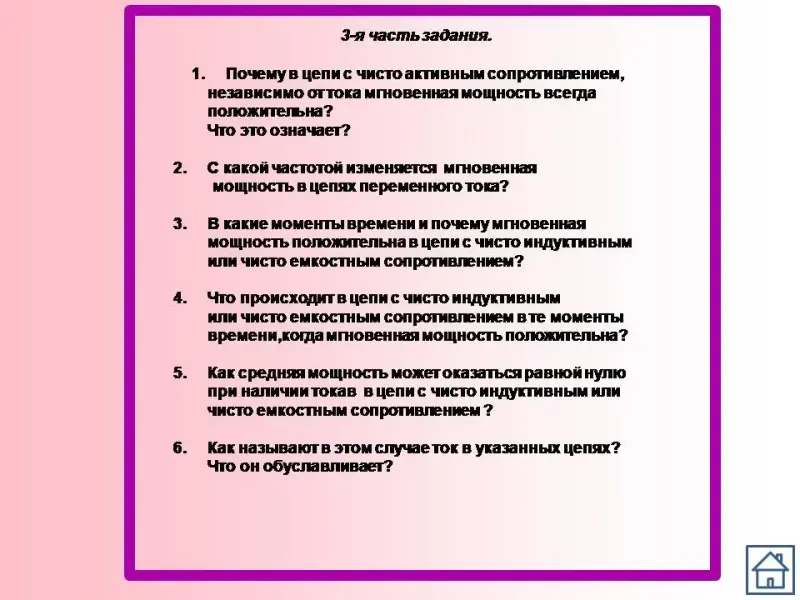 - Во 2-й части необходимо по графику мгновенной мощности описать характер ее изменения и ее свойства.