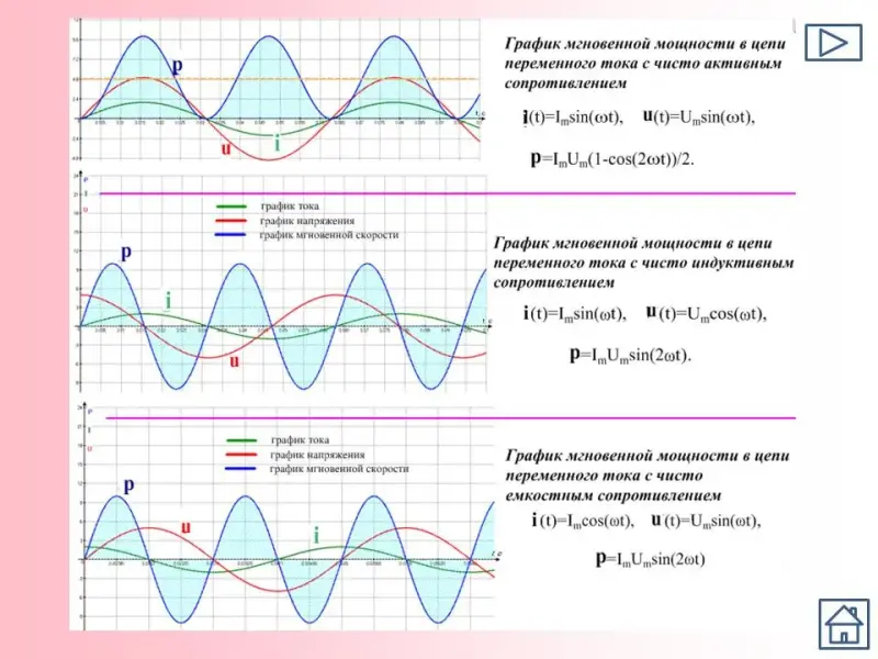 - опрос учащихся при работе с графиком мгновенной мощности (общий случай),