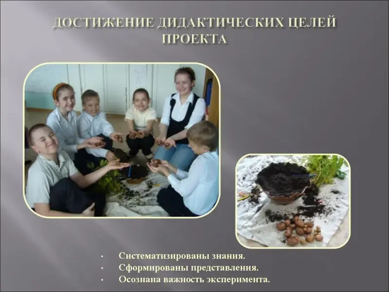 Создание условий для развития познавательной активности, для эксперимента, заинтересованности новыми «неразгаданными» тайнами природы. Определение роли картофеля в природе и жизни человека посредством наблюдения за ростом и развитием культурного растения - картофеля, активизации интереса к окружающему миру природы, заложения основы нового экологического мышления у детей со сложной структурой дефекта, проявляющиеся в их этико-гуманном отношении к растениям, как к живому, неповторимому организму.