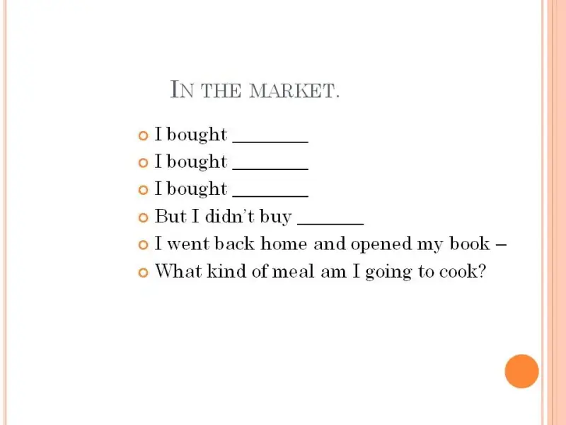 - закрепить и обобщить лексику по теме «Еда», «На рынке».