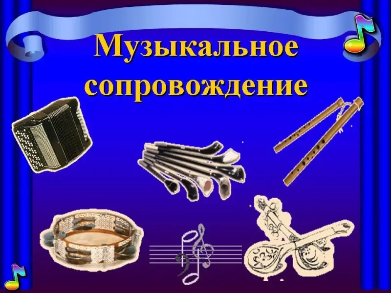 Русская народная песня самобытна, красочна. Исполняется, как вы наверное обратили внимание, без музыкального сопровождения или с сопровождением. Какие музыкальные инструменты помогали ребятам петь?